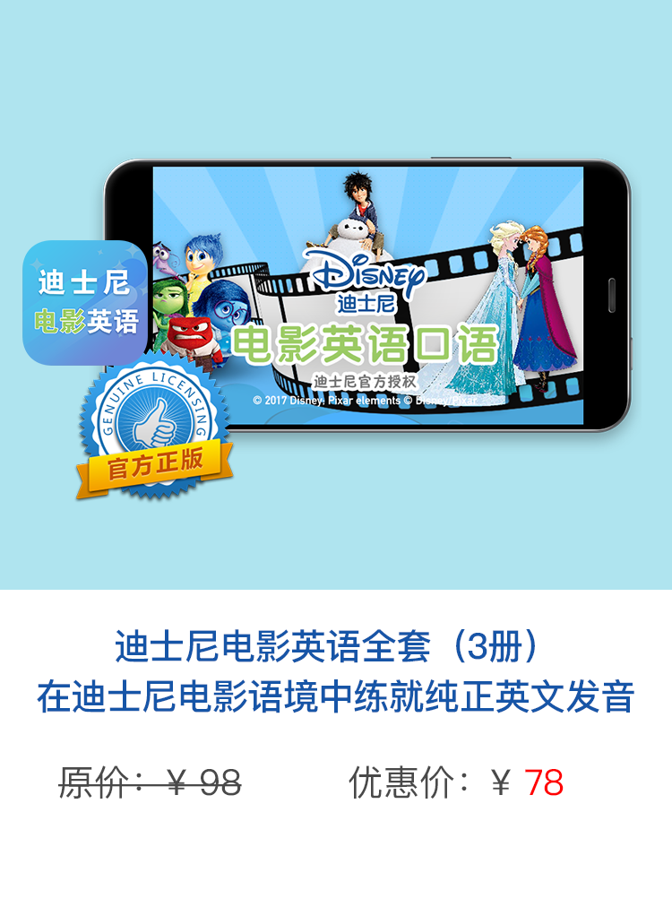 1.使用授权码可获得《迪士尼电影英语口语》Android & iOS版的任意一册内容。